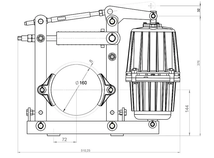 При установке тормозных механизмов данного типа необходимо выдерживать вертикальное положение устройства (с расположением оси тормозного шкива и основания крепления тормозного устройства в горизонтальной плоскости).