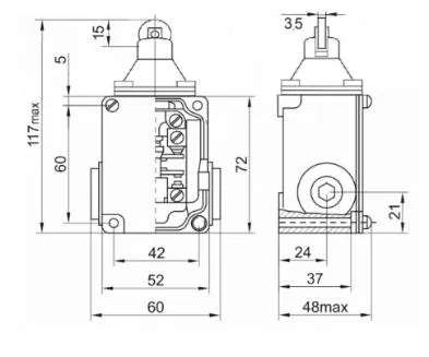 | Срабатывание от воздействия | На ролик под углом 30° |
