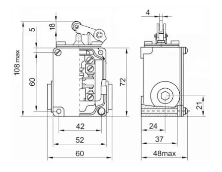 | Срабатывание от воздействия | На ролик под углом 30° |