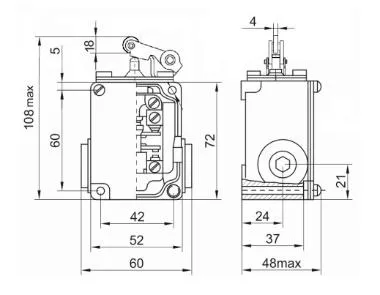 | Срабатывание от воздействия | На ролик под углом 30° |