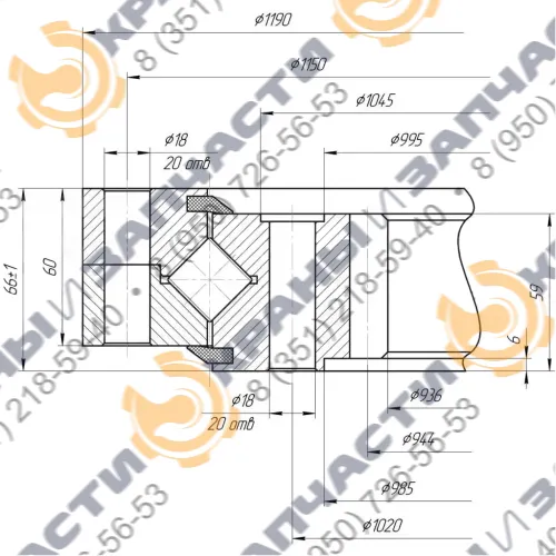 Опорно-поворотное устройство (ОПУ) ОП-1190.3.2.8.3.Р.У1 предназначено для автовышек АГП-18, АГП-22, АГП-28, АГП-29, АГП-30. Оно обеспечивает вращение стрелы вокруг оси, соединяя поворотную и неповоротную части машины с помощью 20 высокопрочных болтов.