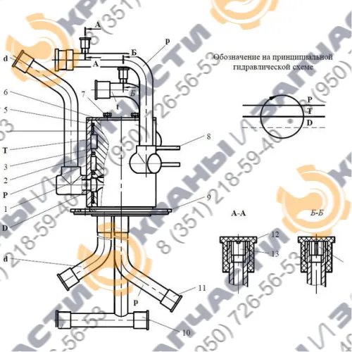 Составляющие: 1, 2 - комбинированные уплотнители, 3 - обойма, 4, 5 - уплотнительные кольца, 6 - шайба, 7 - болт, 8 - поводок, 9 - корпус, 10, 11, 12 - заглушка, 13, 14 - дроссель.