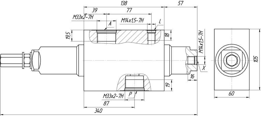 Обратный управляемый клапан КС-3577.84.700-01 предотвращает обратный поток рабочей жидкости (от гидродвигателя к насосу) при нахождении золотника рабочей секции в рабочем положении .