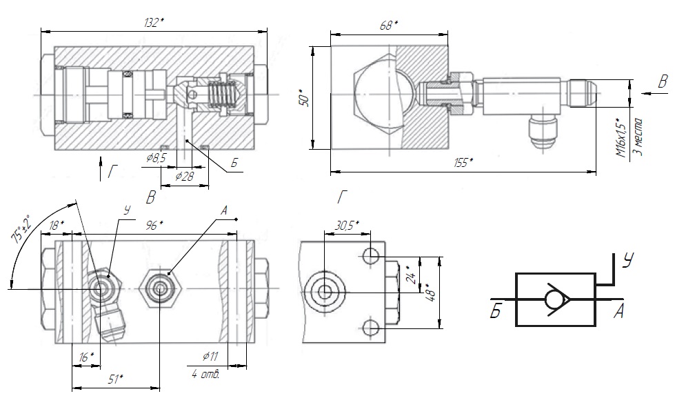 Гидравлический замок КС-65711М.88.10.010 является управляемым обратным дросселем. Такое устройство работает в комплексе с гидравлическим цилиндром вывешивания опор. Гидрозамок пропускает субстанцию исключительно в прямом направлении, до появления давления управления. Помимо этого, агрегат повышает надежность работы системы, предотвращая произвольное перемещение штока цилиндра.