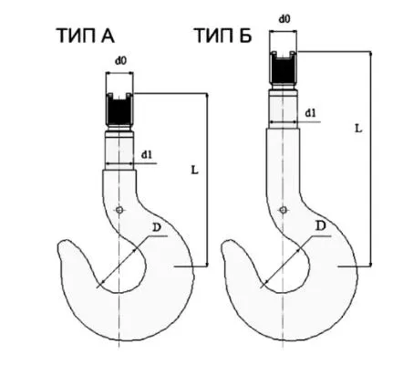 Конструкция и размеры кованых и штампованных однорогих и двурогих крюков с цилиндрическим хвостовиком для кранов регулируются межгосударственным стандартом ГОСТ 34680-2020. Классификация крюков зависит от предела текучести стали, из которой они изготовлены, и группы классификации режима работы механизма.